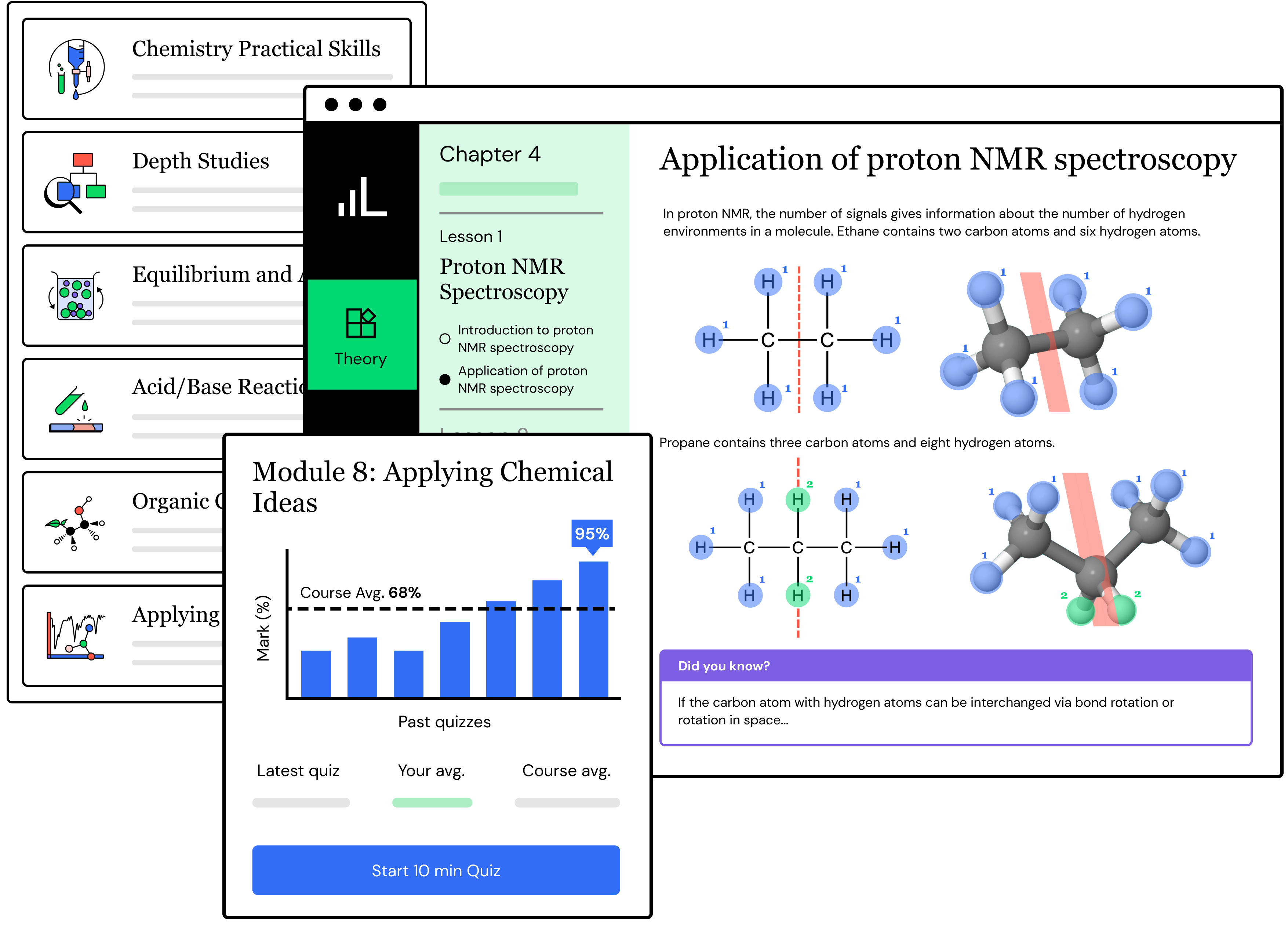 Save time with all-in-one Chemistry resources: interactive theory, customisable quizzes, mock exams and intelligent reporting.