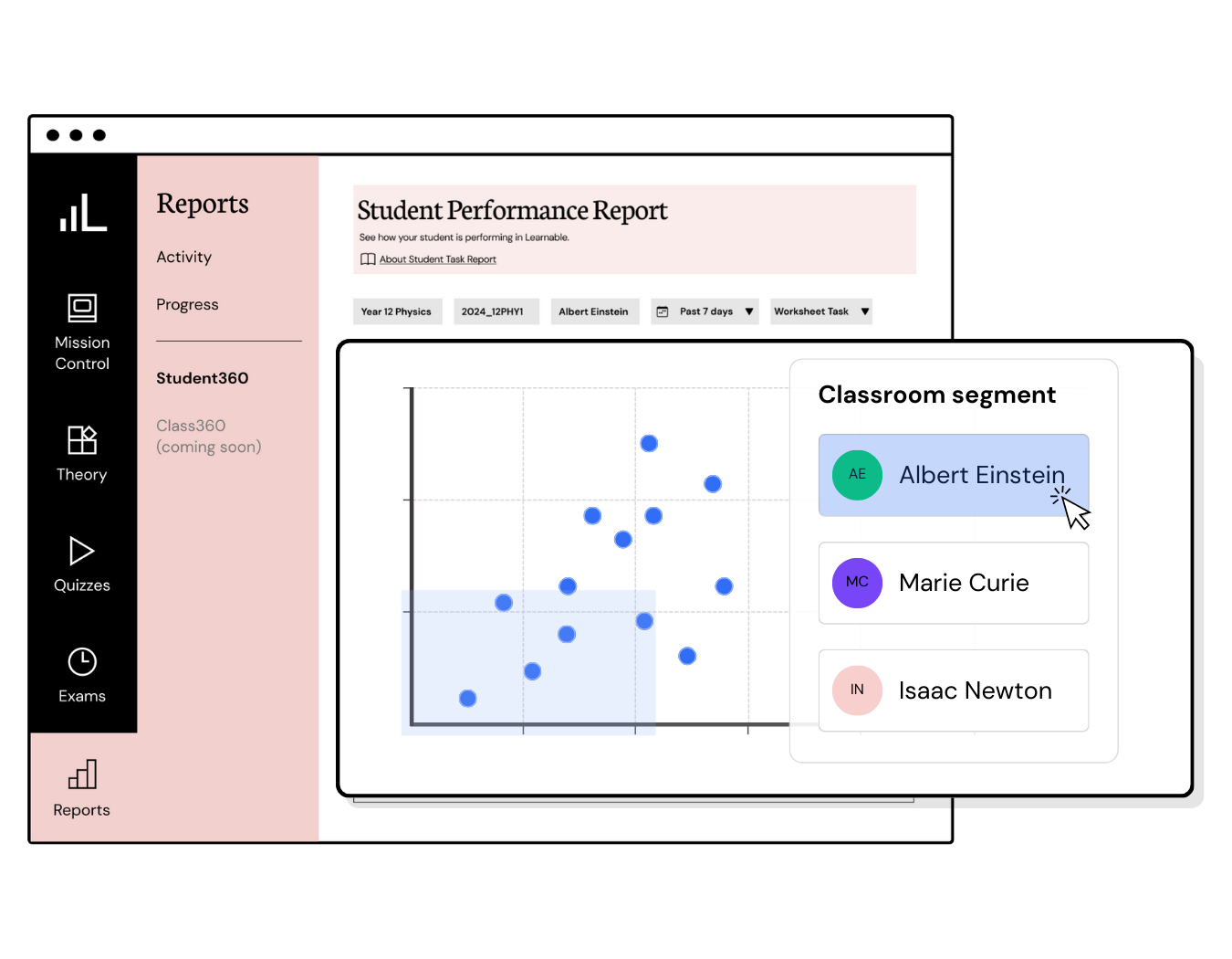 Deliver targeted lesson content with Class360 segmented reports that identify student focus groups by progress, engagement, and performance.